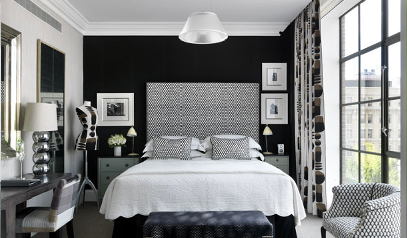 The color Black is elegant, mysterious, stunning. Used in Bedrooms in combination with white, it is pure drama. You just can’t go wrong with this combo! For the adventurous, the introduction of a third color, by way of a colored wall or accessories can yield great results. Changing the color element frequently while keeping the